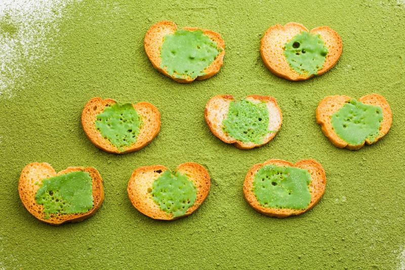 抹茶小脆——清鮮的抹茶融入濃醇的奶油,讓抹茶的清香一絲絲浸入奶油中,再遇上松脆適口的面包片。一口一口,抹茶香、奶香、面包香同時(shí)綻放在味蕾,根本停不下嘴。
