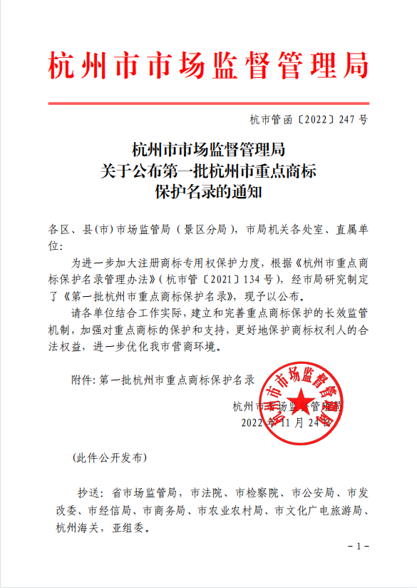 近日,杭州市市場(chǎng)監督管理局公布了《第一批杭州市重點(diǎn)商標保護名錄》,浙茶集團旗下“駱駝”牌商標成功入選。